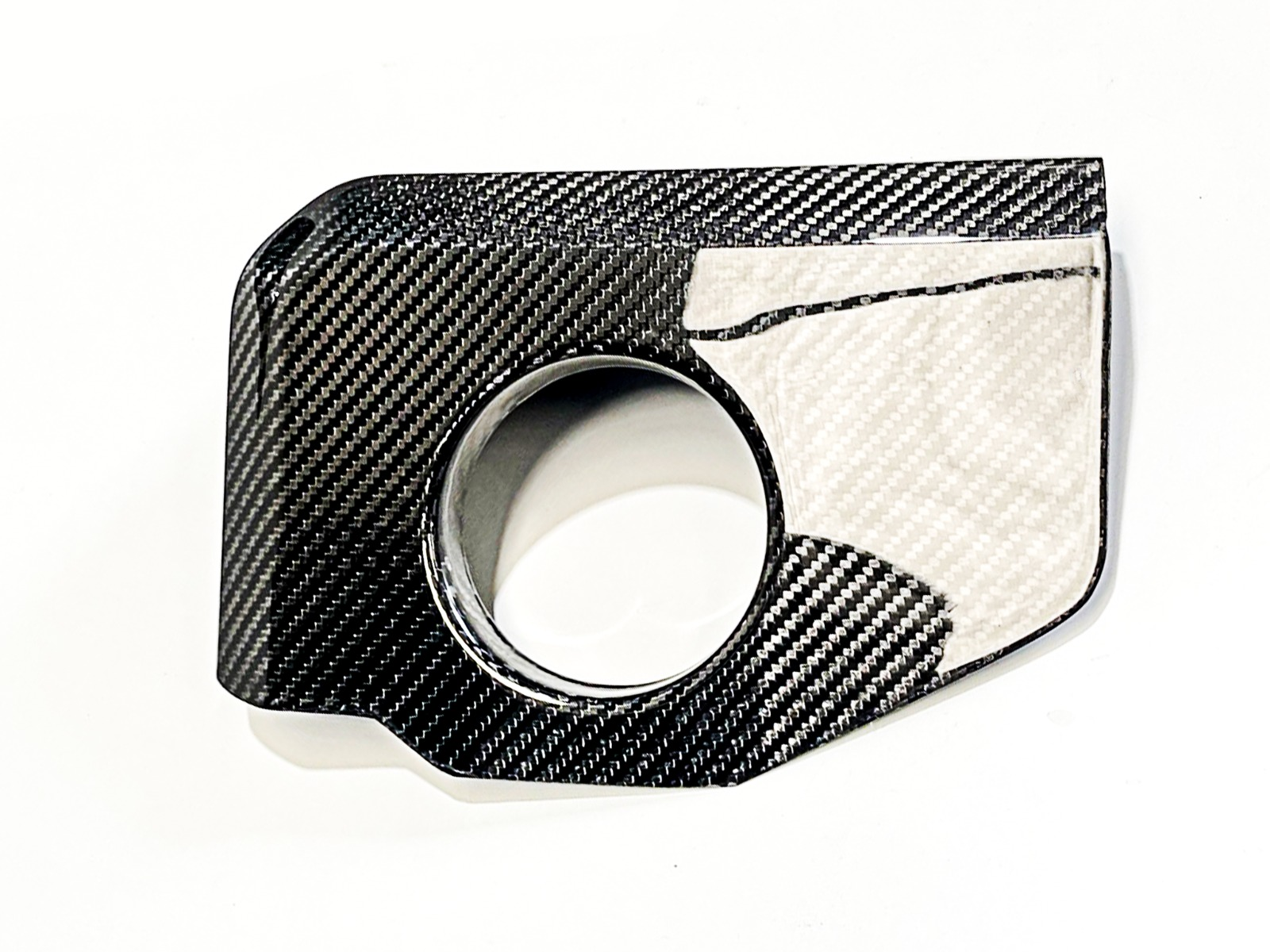This part acts as a direct replacement to the original cover (no OEM plastic parts skinned in carbon fibre!). As a result our cover offers a weight saving over the original and looks fantastic!