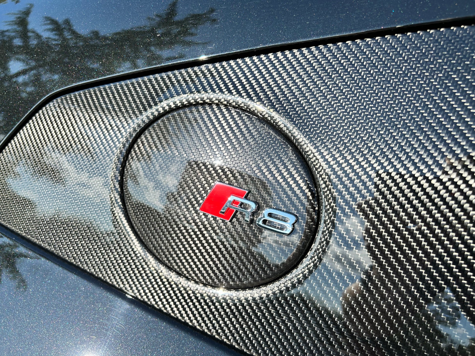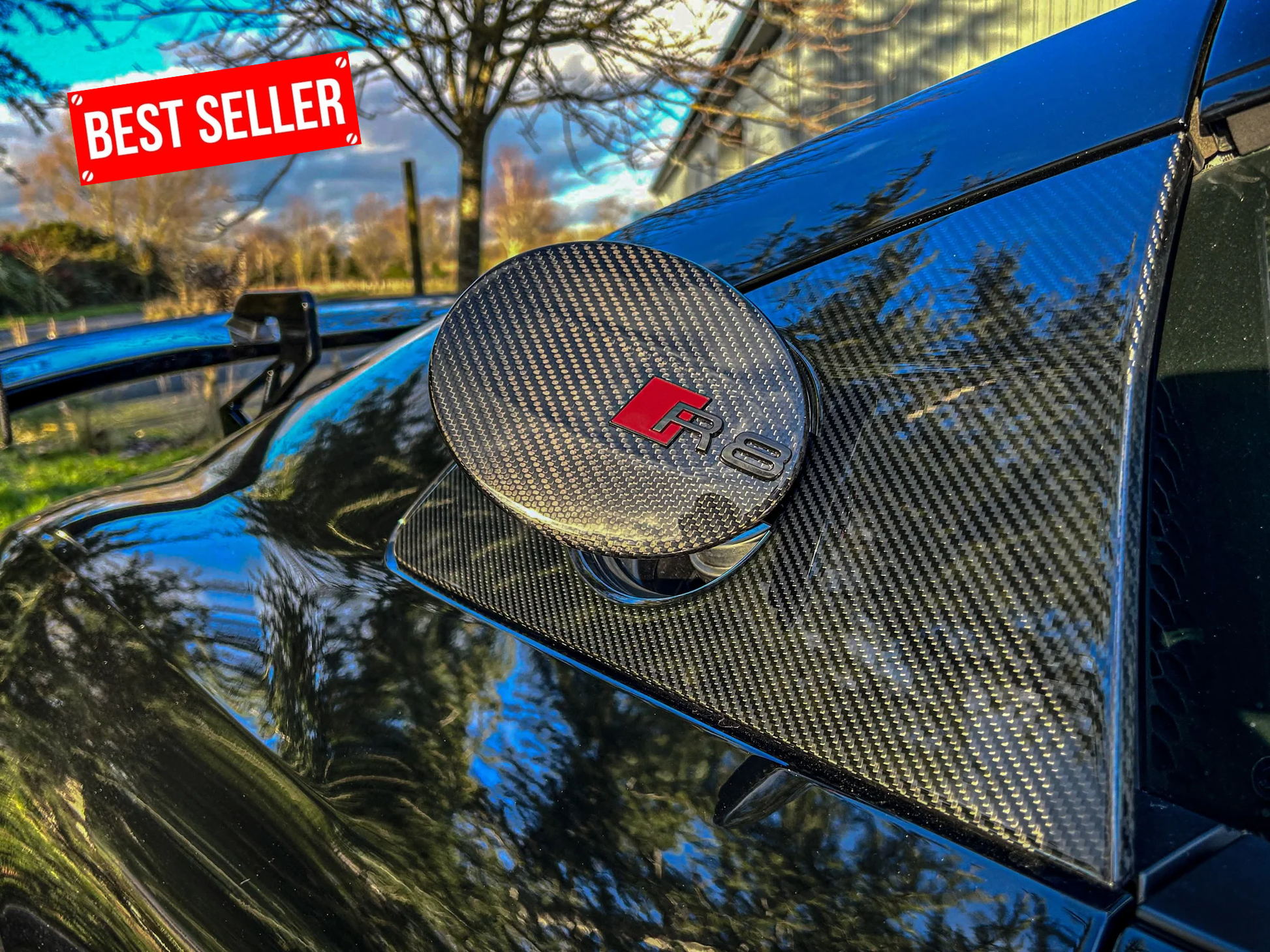 The carbon weave on our fuel cap cover is an exact match to the carbon side blades fitted to R8 V10 Plus (2017-2023).